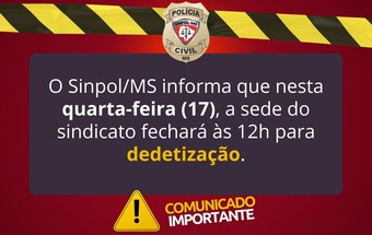 Sinpol/MS fecha às 12h nesta quarta-feira (17) para detetização