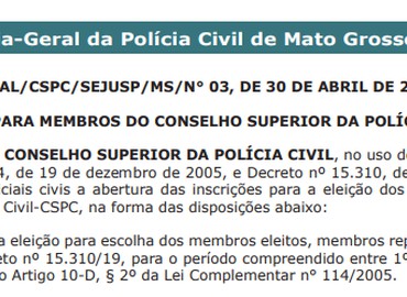 Polícia Civil publica edital para eleição de membros do Conselho Superior