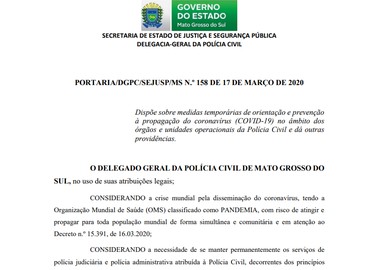 Polícia Civil divulga Portaria com orientações preventivas sobre Covid-19