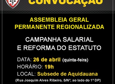 Sinpol convoca regional de Aquidauana para assembleia