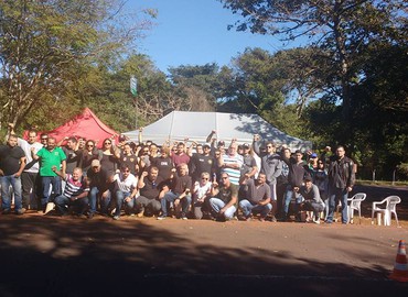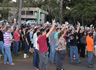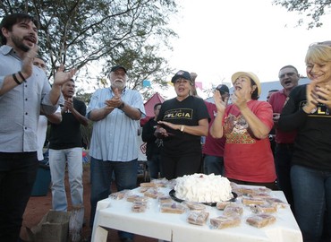 Protesto dos policiais civis teve bolo para lembrar o primeiro mês de acampamento