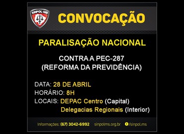 Sinpol convoca policiais civis para Paralisação Nacional de 28 de abril