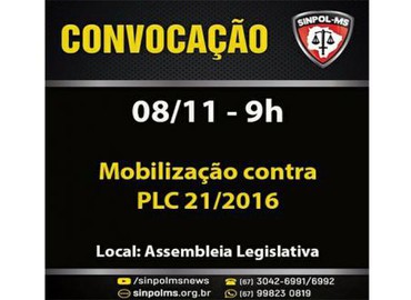 Sinpol-MS convoca os policiais civis para protestar contra PLC 021/2016