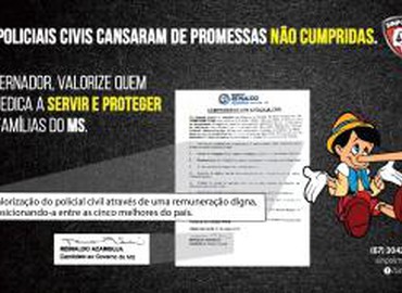Em campanha publicitária, policiais civis mostram indignação pelas promessas não cumpridas.