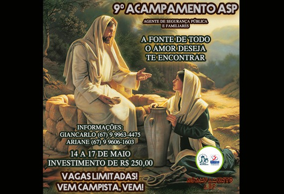 O 9º Acampamento ASP será realizado nos dias 14, 15, 16 e 17 de maio, em Campo Grande. O evento é voltado para os Agentes de Segurança Pública e familiares.