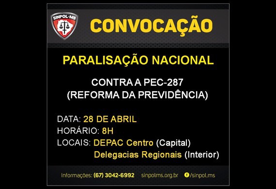 O Sinpol-MS disponibiliza uma cartilha de orientação a ser seguida pelos policiais civis durante a manifestação do dia 28 de abril.