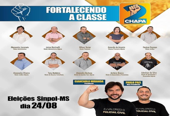 Chapa 2 - Fortalecendo a classe vence eleição para diretoria do Sinpol-MS