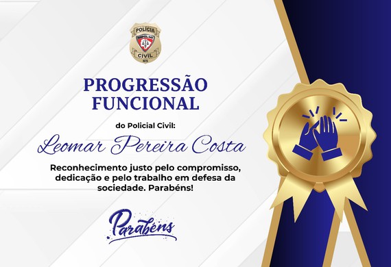 O Diário Oficial do Estado desta segunda-feira (6) trouxe a publicação da resolução que concede progressão funcional ao policial civil Leomar Pereira Costa, com fundamento no Artigo 107 da Lei Complementar nº 114 de 19 de dezembro de 2005 e Resolução “P” SEJUSP nº 152/16, de 02 de maio de 2016.