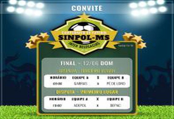 A grande final do Campeonato de Futebol Sinpol Inter Delegacias será realizada no próximo domingo (12), às 09h, na sede do sindicato em Campo Grande. O campeonato teve sete equipes inscritas e foi marcado por jogos disputadíssimos. “Houve interação entre os jogadores e muitos momentos descontraídos. Acredito que o campeonato fez o seu papel de promover a integração entre os colegas e promover atividades físicas que fomentam a qualidade de vida”, destacou o presidente do Sinpol-MS, Giancarlo Miranda.