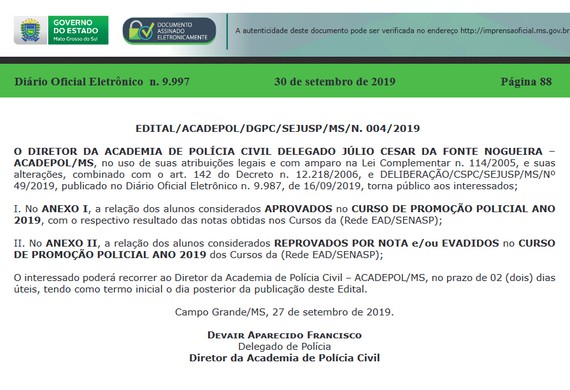 A lista completa você confere no link: http://www.spdo.ms.gov.br/diariodoe/Index/Download/DO9997_30_09_2019