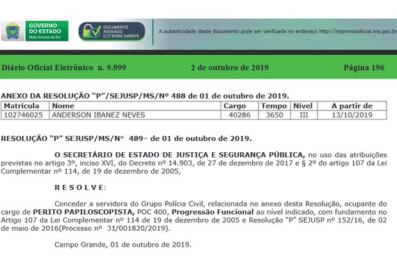 Foi publicado hoje (02), no Diário Oficial nº 9.999, a partir da página 195, o nome de mais três policiais civis contemplados para a Progressão Funcional (ao nível indicado), com fundamento no Artigo 107 da Lei Complementar nº 114.