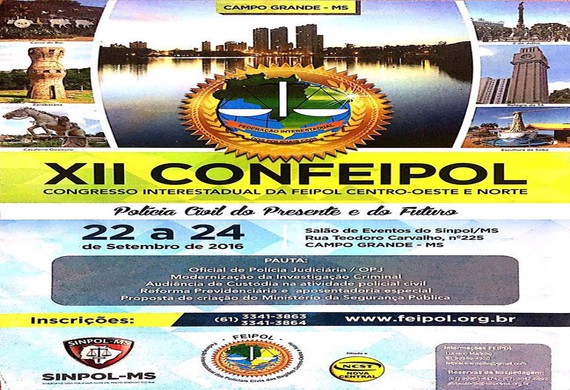 Será realizada nesta quinta-feira (22), às 20h, a abertura do XII Congresso da FEIPOL-CON sobre o tema “A Polícia Civil do Presente e do Futuro”. O evento será realizado nos dias 22, 23 e 24 de setembro na sede da entidade como parte das comemorações do Dia do Policial Civil. Serão abordados os seguintes assuntos: