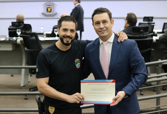 Nesta terça-feira (18), a Câmara de Vereadores de Campo Grande, através da indicação do vereador André Salineiro, emitiu uma Moção de Congratulação ao investigador André Santos Melo em reconhecimento a sua dedicação ao serviço de proteção da sociedade ao realizar uma prisão durante seu período de folga. O Sinpol-MS o parabeniza pelo empenho em servir e proteger a sociedade em todos os momentos.