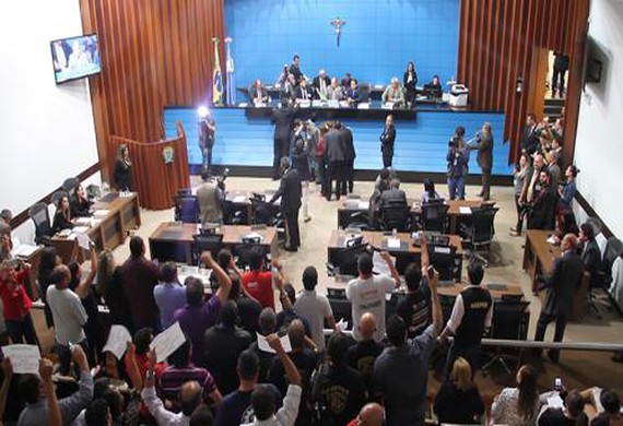 Com sessão conturbada nesta quarta-feira (21), e votação sob protestos, os Deputados Estaduais aprovaram os projetos de lei 221/2016 e 112/2016, que são nocivos aos servidores públicos e à população sul-mato-grossense. Representantes de vários sindicatos, incluindo o Sinpol, protestaram para que os projetos fossem votados depois de que as propostas fossem melhor debatidas com a sociedade e com os representantes de cada categoria.