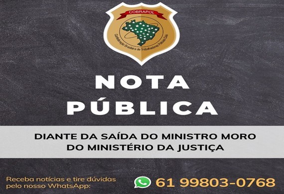 A COBRAPOL, após o anúncio da saída do ministro Sergio Moro do Ministério da Justiça e Segurança Pública, vem a público manifestar o que se segue: