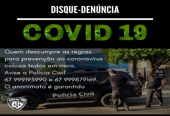 A Polícia Civil pede para que a sociedade denuncie as pessoas que estão descumprindo as medidas tomadas no esforço para conter o avanço da pandemia de Covid-19. Em Campo Grande, as denúncias podem ser feitas pelo telefone 67 999195990 e 67 999879169 ou nas regionais.