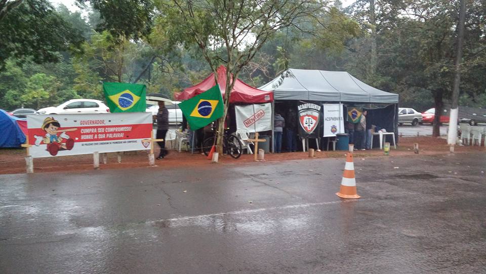 Os Policiais Civis do Mato Grosso do Sul estão há 15 dias acampados em frente à governadoria. Eles protestam pacificamente contra o governo do estado que não cumpriu os compromissos firmados com a categoria desde o ano de 2014, destacando-se o reposicionamento salarial entre os cinco melhores do país e o plano de carreira.