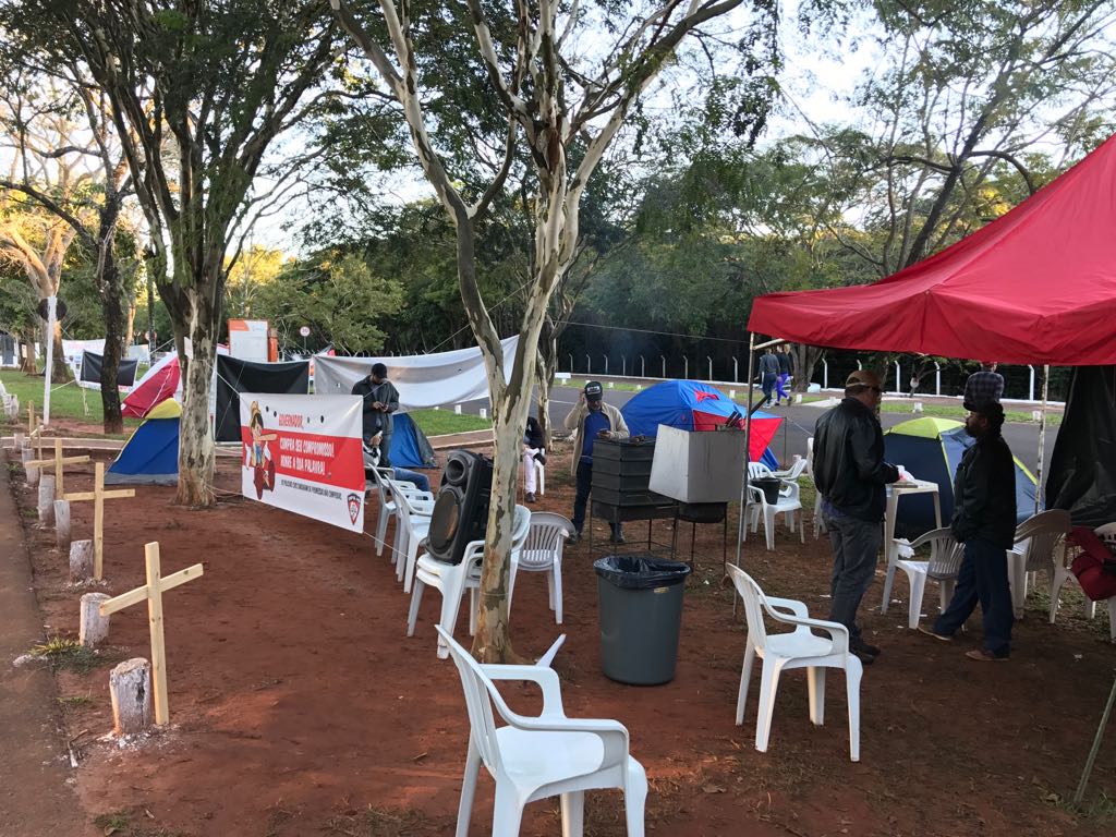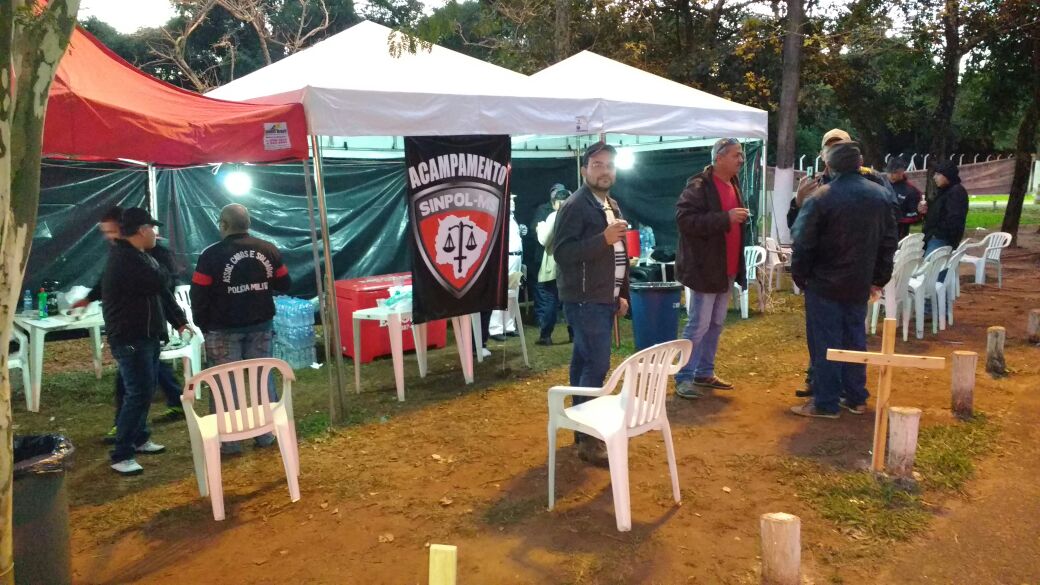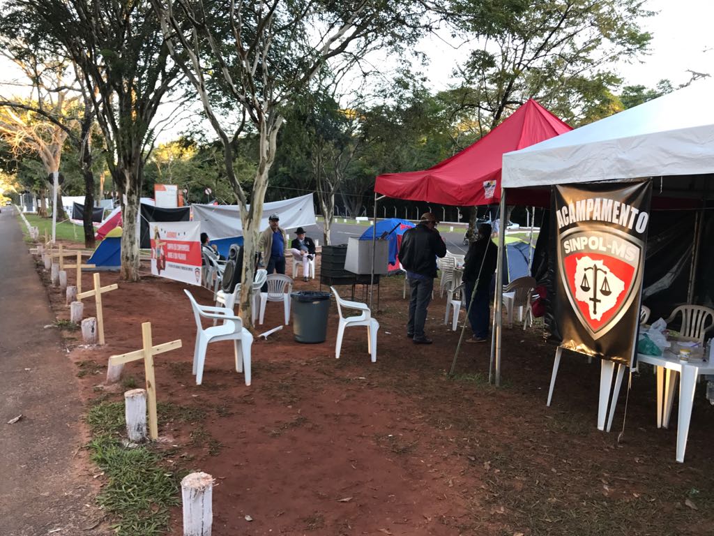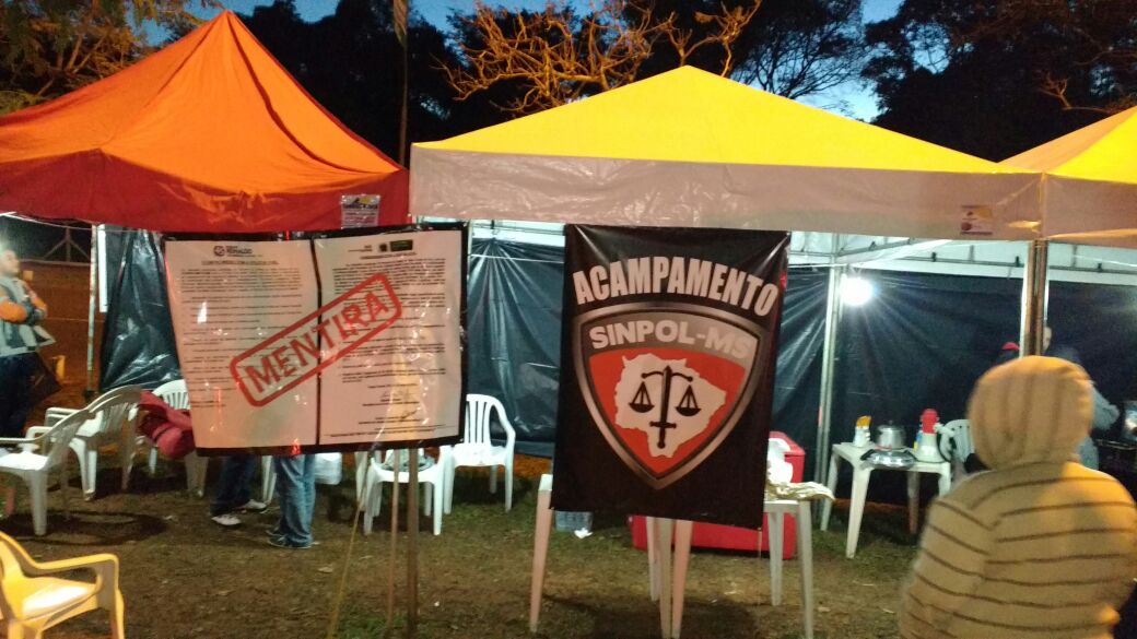 Hoje (11) é o quinto dia de acampamento dos policiais civis em frente à governadoria em protesto ao governo do estado que não cumpriu os compromissos firmados com a categoria. O grupo permanece firme mesmo diante das baixas temperaturas em Campo Grande.