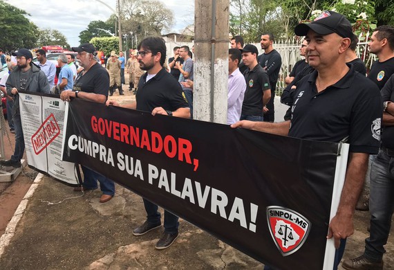 Na manhã desta segunda-feira (12), os policiais civis fizeram uma manifestação pacífica durante a solenidade de entrega de viaturas pelo governo do estado no município de Coxim. Conforme deliberado pela classe na última sexta-feira (09), o sindicato comparecerá aos eventos em que o governador Reinaldo Azambuja estiver presente com o intuito de demonstrar a insatisfação com a política de desvalorização dos policiais civis. “Novamente, o governador tem mentido para população, colocando na imprensa que a maioria dos policiais civis tem boa remuneração. Promoção funcional e salário em dia são deveres do Estado e não enxergamos isso como benefício algum”, destacou o presidente do Sinpol-MS, Giancarlo Miranda. A entidade alerta que continuará cobrando que o governo estadual cumpra os compromissos firmados com a categoria. Há seis dias os policiais civis estão acampados em frente à governadoria e prometem ficar até que o governador os atenda.