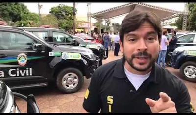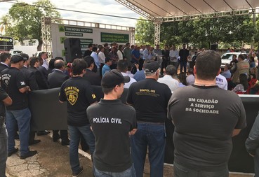 Policiais civis fazem manifestação durante entrega de viaturas em Coxim