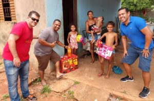 Um grupo de 31 amigos investigadores, escrivães, delegados de Polícia e estagiários, denominados “Peladeiros do Sinpol”, realizou uma ação solidária que doou cestas básicas e presentes para centenas de crianças carentes moradoras do bairros Jardim Aero Porto, Vila Romana, Santa Mônica e Sayonara. A entrega dos donativos foram realizadas na quarta-feira (19). A ideia inicial era atender um número específico de famílias, mas a ação superou as expectativas e muitas outras famílias foram atendidas. O Sinpol-MS parabeniza o grupo pela iniciativa de reunir os amigos para praticar a solidariedade.