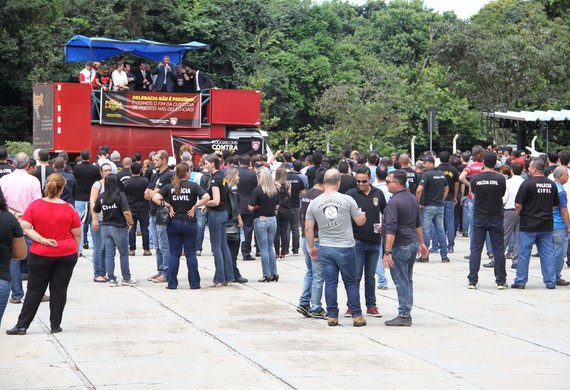 Policiais fazem protesto em frente da Assembleia; quatro deputados demonstram apoio
