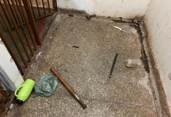 Equipes da perícia foram acionadas para avaliar o local e encontraram facas, martelos e um taco de beisebol no chão da cela.