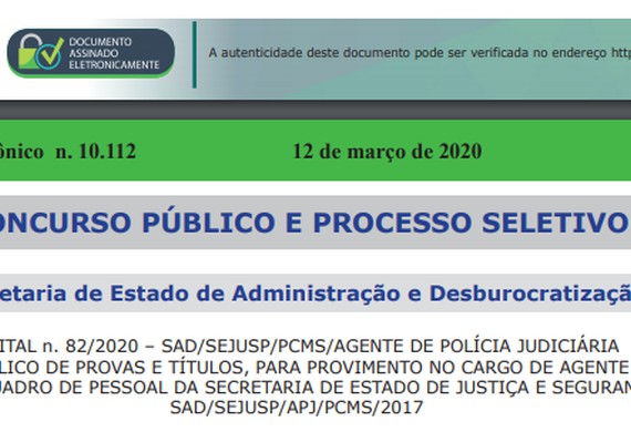 Confira o edital: http://www.spdo.ms.gov.br/diariodoe/Index/Download/DO10112_12_03_2020