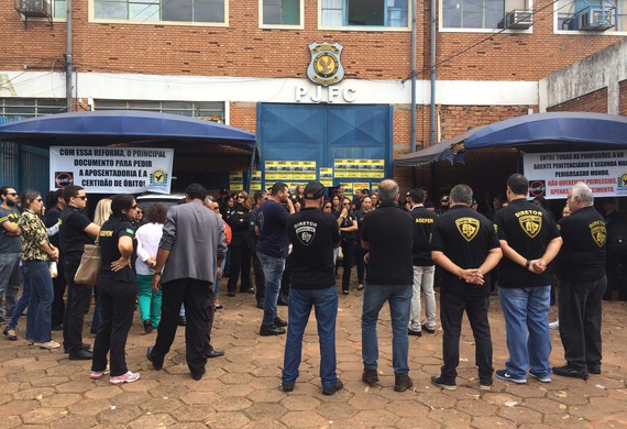 "É importante que todas as categorias que exercem atividade de risco diariamente estejam unidas nesse momento, em busca da aposentadoria policial. Estamos aqui seguindo determinação da UPB Nacional", declarou Max Dourado. Hoje, todas as categorias de segurança pública estão manifestando contra a Reforma da Previdência em todo Brasil.