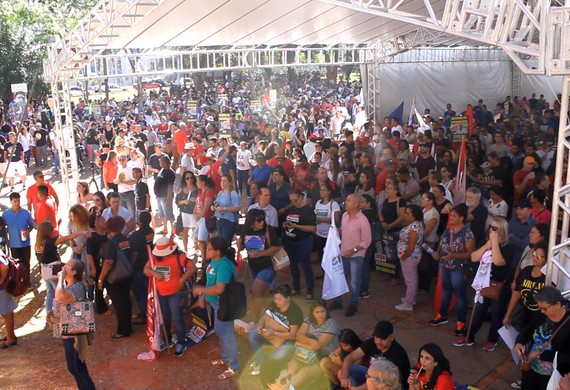 Nesta sexta-feira (14), está sendo realizada uma manifestação nacional contra a Reforma da Previdência e aos cortes da educação, convocada por inúmeras entidades de classe do Estado. Cerca de 5 mil trabalhadores estão desde às 8h30 na Praça do Rádio Clube, no centro de Campo Grande.