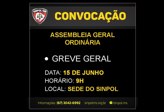 A Assembleia Geral será realizada na sede do Sinpol, em Campo Grande.
