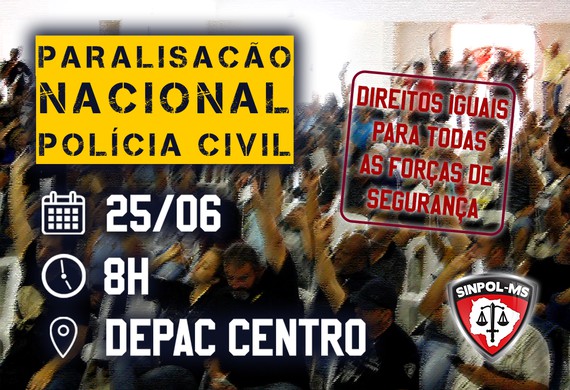 A concentração da categoria será em frente à Depac Centro, a partir das 8h; e no interior, a concentração será nas delegacias regionais.