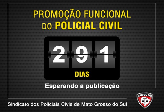 Começou nesta segunda-feira (18), a campanha de marketing do Sinpol-MS sobre a demora na publicação da Promoção Funcional dos Policiais Civis. No site e nas redes sociais do sindicato permanecerá visível um calendário contando há quantos dias a categoria aguarda a publicação. Também, está em veiculação um spot sobre o mesmo tema nas rádios FM Difusora de Campo Grande e em rádios das cidades do interior. Segundo o presidente da entidade, Giancarlo Miranda, foram protocolados diversos ofícios cobrando a publicação. “Dialogamos com a administração, buscando ao menos uma data de quando ocorrerá a publicação, no entanto não obtivemos resposta até agora. A publicidade permanecerá na mídia até o dia em que as promoções forem efetivadas”, declarou.