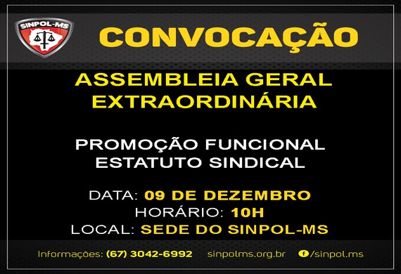 Sinpol-MS convoca para Assembleia Geral e confraternização neste sábado (09)