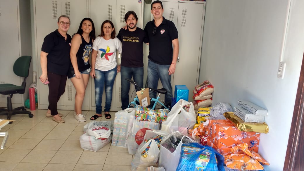 Nesta semana, o Sinpol-MS realizou a entrega de donativos arrecadados durante a 5ª Campanha Encontro de Craques - Natal Solidário. No total, 120 crianças com idades de zero a 14 anos de quatro abrigos receberam brinquedos novos e/ou material escolar. O Asilo São João Bosco também foi beneficiado com a doação de suplementos alimentares Ensure. O presidente do sindicato, Giancarlo Miranda, observa que é preciso realizar mais ações solidárias durante o ano. “Essas entidades realizam um ótimo trabalho cuidando de crianças e idosos que estão longe das famílias. Devemos dar apoio a estes projetos não somente com a doação de alimentos e objetos, mas também com a doação do nosso tempo. Como cidadãos e policiais civis devemos servir através da solidariedade e proteger através do cuidado”, declarou Giancarlo. Foram atendidas as instituições Vovó Miloca, Abrigo Peniel, Unidade de Acolhimento Institucional de Crianças – II, a União de Amparo Infantil - UAI Bebê e Asilo São João Bosco.