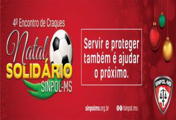 O Sinpol-MS realizará pelo quarto ano consecutivo a campanha do Natal Solidário, no qual o objetivo é arrecadar alimentos não perecíveis para doação as instituições de caridade. O evento começa com o “Encontro de Craques”, no sábado (10), a partir das 10h, e a entrada é R$ 20,00 + 1kg de alimento não perecível. Após a partida de futebol será servida uma saborosa feijoada. “Mais do que proteger a sociedade, também queremos servi-la através de ações de solidariedade para pessoas que precisam de ajuda”, declarou o diretor trabalhista e um dos organizadores do evento, Amaury José Pontes.