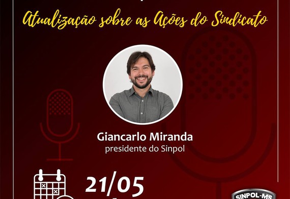 O presidente do Sinpol, Giancarlo Miranda, realiza nesta quinta-feira (21), às 14h, mais uma live semanal para esclarecer dúvidas sobre temas de interesse da categoria. O tema principal será o projeto aprovado pela Assembleia, que aumentou a alíquota da previdência.