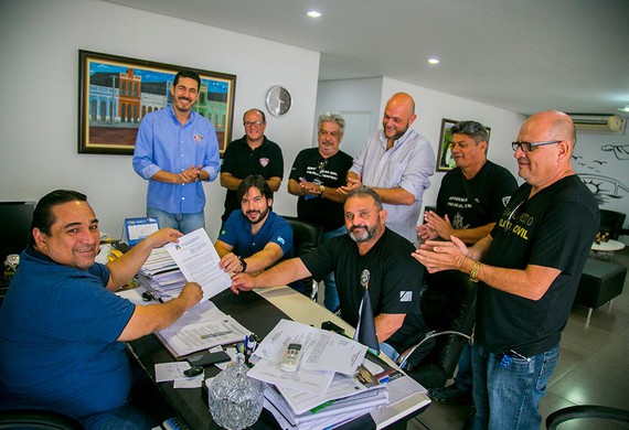 Na manhã desta terça-feira (10), o presidente do Sinpol, Giancarlo Miranda; o diretor jurídico, Hectore Ocampo Filho; o diretor administrativo adjunto, Jaime Martinelli, juntamente com os policias civis Damião Silva Brandão, Antônio Virginio, Hedyl Benzi, Sérgio Roa e Israel Bogarim, receberam o documento assinado pelo prefeito de Corumbá, Marcelo Iunes, que sancionou a lei da doação do terreno para construção da subsede, no município.