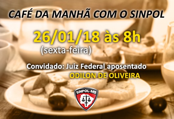 Na próxima sexta-feira (26), será realizado um café da manhã, a partir das 8h, na sede do Sinpol, em Campo Grande, junto com o Juiz Federal aposentado, Odilon de Oliveira. O objetivo do encontro é debater com autoridades e políticos os pleitos dos policiais civis.